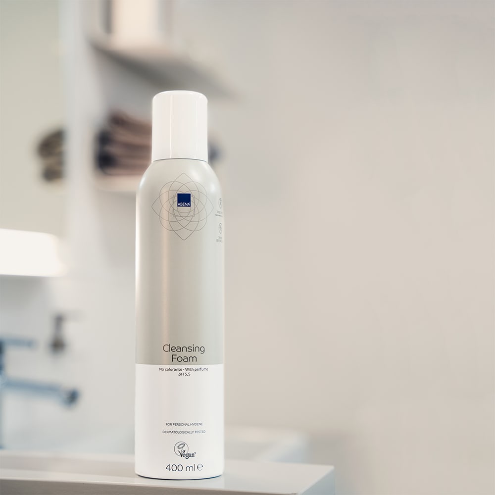Ο αφρός καθαρισμού της ABENA είναι ένα ήπιο καθαριστικό προϊόν ιδιαίτερα κατάλληλο για χρήση κατά την αλλαγή προϊόντων ακράτειας, καθώς διαλύει αποτελεσματικά τα κόπρανα και απομακρύνει τις δυσάρεστες οσμές του σώματος.