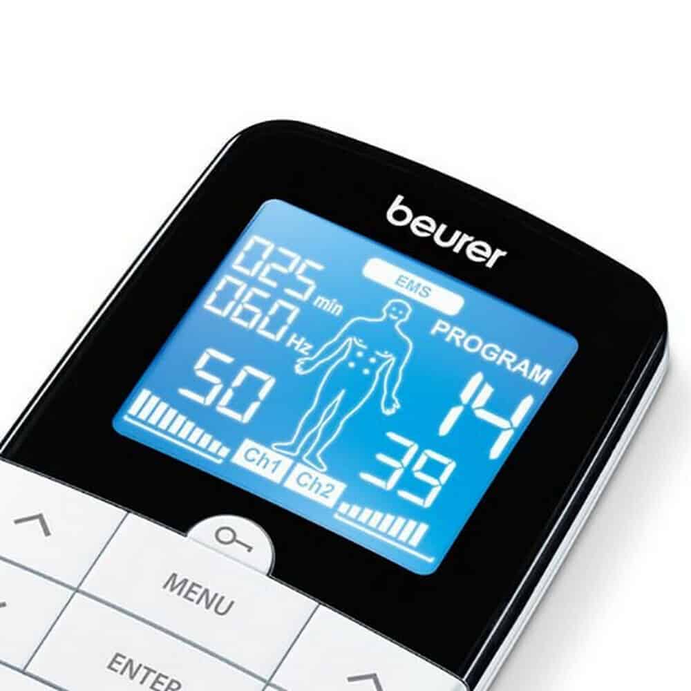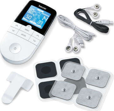 - 2 ξεχωριστά ρυθμιζόμενα κανάλια με 4 αυτοκόλλητα ηλεκτρόδια (περιλαμβάνονται ηλεκτρόδια μεγέθους: 45 x 45 χιλ.)