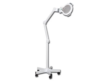 Λάμπα LED ψυχρού φωτισμού, εξοπλισμένη με φακό μεγέθυνσης 3 διοπτριών και δυνατότητα ρύθμισης φωτεινότητας. Διαθέτει βάση με 5 τροχούς υψηλής σταθερότητας και αρθρωτό βραχίονα για εύκολη μετακίνηση και σταθεροποίηση της λάμπας.